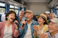 シニア世代のレクリエーションで特に盛り上がるのが車内カラオケ。